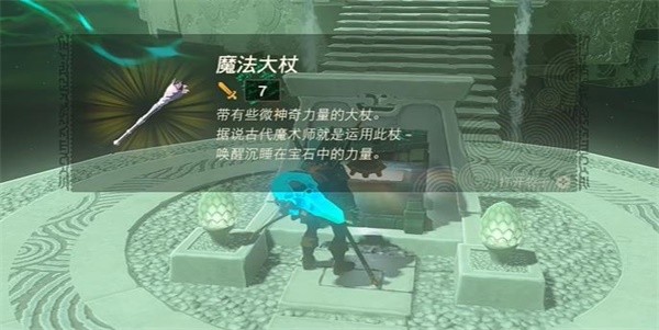 3.进入玛雅寺后,我们可以看到宝箱的位置。我们可以打开宝箱,拿到里面的武器【魔法杖】。