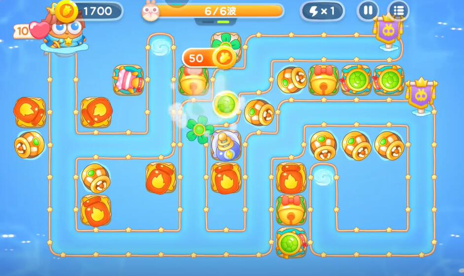 7.建造更多的防御塔,消灭所有兔子,完成第一轮塔防。