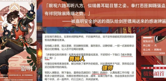 1、除了是渭水舞兽队的说话者之外,他还是一名护卫。