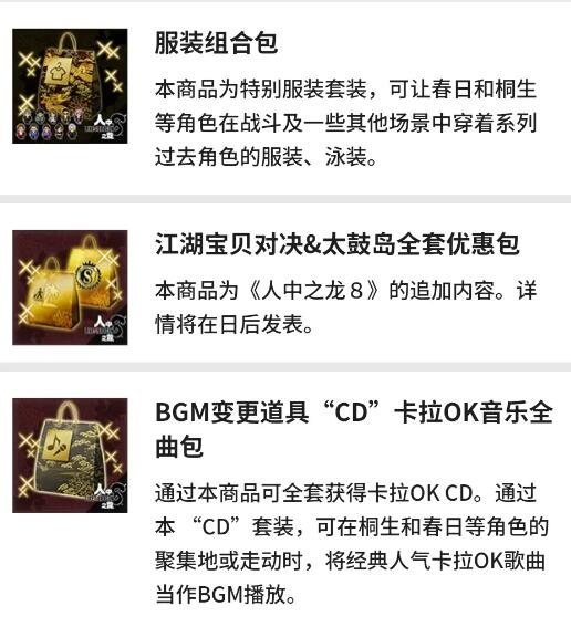 《如龙8》有终极版和豪华版。你一定很好奇这两个版本意味着什么。其实终极版是豪华版的进阶版,其中包括服装包、优惠包和全套CD歌曲包,这里给大家详细介绍一下如龙8究极版和豪华版的具体内容,我们来看看看。