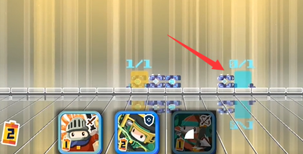 1.选择弓箭手清除中间的方块,场上只剩下两个方块。