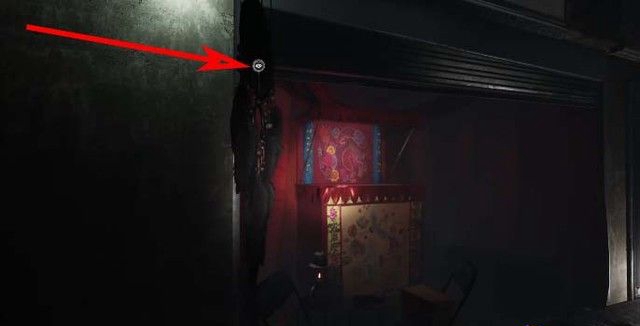 如下图箭头所指,前方有一条窄巷,里面有一个杠杆。您需要向下拉动控制杆才能打开门。