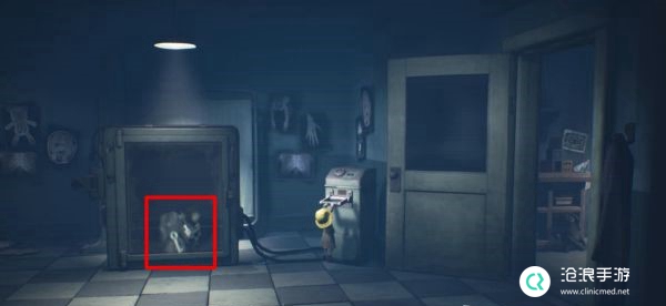 前进的道路需要熔断器被打开。我们先向左走,来到图中的房间。我们可以看到保险丝在柜子里。由于此时傀儡师还在房间里,所以我们继续向左和小六走。配合进入左边的房间。