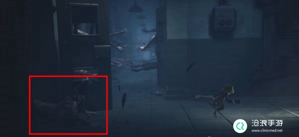 移动挡住道路的箱子。这时,旁边床上的尸体的手就会远离尸体,快速移动,消失在黑暗中。