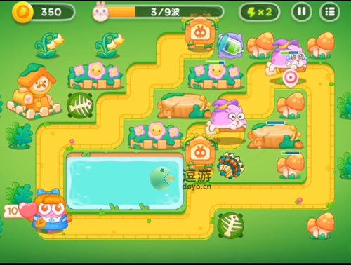 8.这一波使用鱼骨塔攻击障碍物,然后使用多支箭攻击兔子。