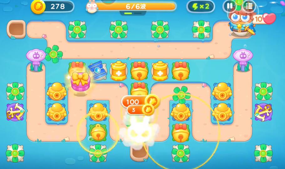 7.建造更多的防御塔,消灭所有兔子,完成第一轮塔防。
