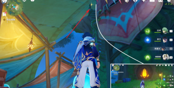 9.然后我们需要去最高点,然后使用四叶封印到达树顶,然后走飞阁,等待一段时间,到达最高点;
