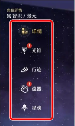 人物培养分为5个模块:等级、光锥、舍利、痕迹、星魂;