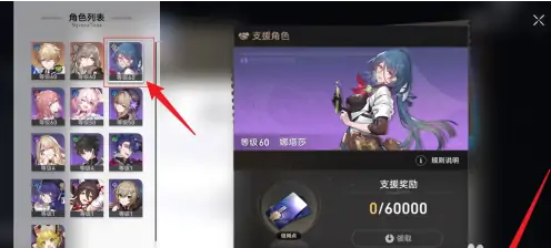2、然后我们点击我们需要选择支援的角色即可;